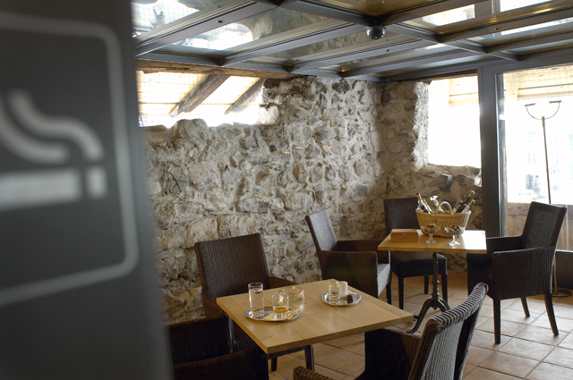 Das rustikale Dachgebälk, die alten Mauern und die schöne Aussicht auf die Aare, den Rathausplatz und die Stadt verleihen dem Raum ein spezielles Ambiente.